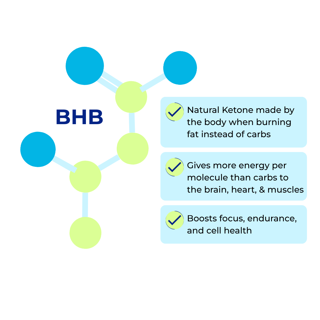 BHB, whether made naturally in the body or taken as a supplement, offers several benefits, particularly for mental clarity and physical performance. It provides an efficient and consistent energy source, reducing brain fog that can be associated with glucose fluctuations. For busy professionals to athletes seeking enhanced endurance, BHB can improve stamina and focus, and reduce fatigue. Additionally, BHB’s antioxidant properties help protect the body from oxidative stress, supporting overall health.